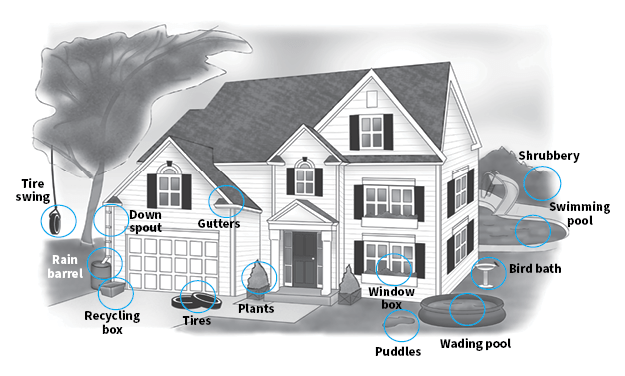 - Drill holes in the bottom of containers and tire swings so water can’t collect