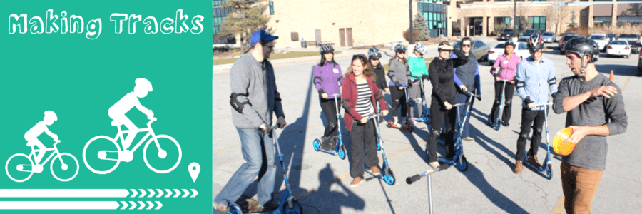 York Region’s Making Tracks program is an active transportation education program geared towards elementary students in teaching safety and skills fundamentals in walking, cycling and scootering through a fun and informative way. The Making Tracks program is based on a train-the-trainer model involving teacher instruction to deliver the programming to their students through curriculum-based units designed with experiential learning and physical activity.