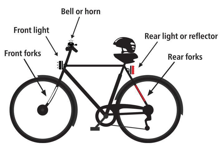 - Bell or horn: A bell or horn that works must be attached to the bike