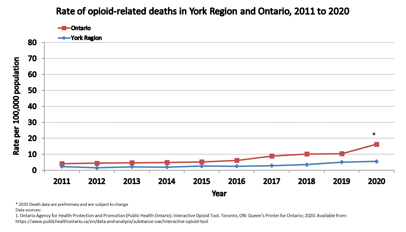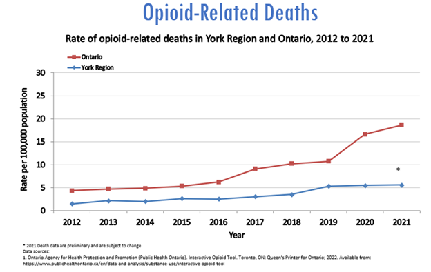 York Region is experiencing a drug poisoning emergency like many other regions across Canada. In the past few years, opioid-related deaths have continued to slowly rise.