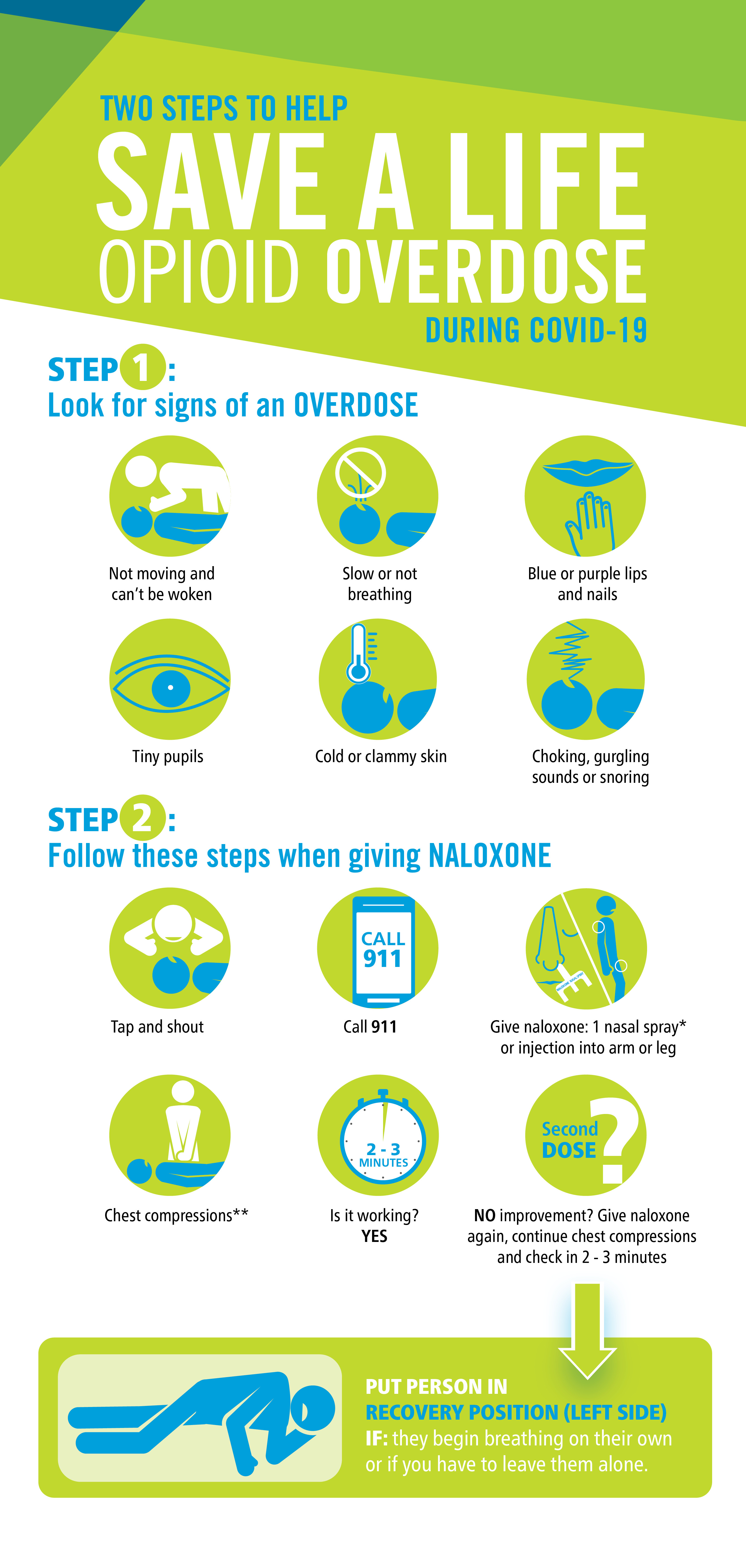 When you think someone is experiencing a poisoning/overdose, review the following the steps to help save a life.