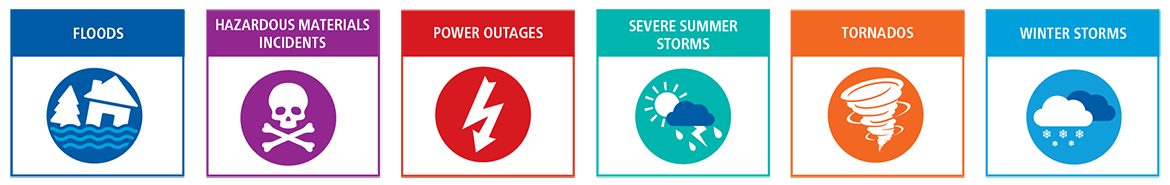 Across York Region, we face many risks and hazards. It is important to know what they are and how to prepare for different situations. Learn about actions you can take before, during and after each of the following emergencies.