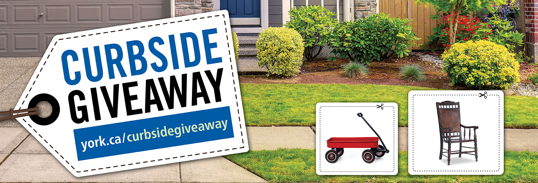 During Curbside Giveaway Days York Region residents are invited to place unwanted items, labelled FREE, at the curb for other residents and community members to browse and take for their own use, free of charge.