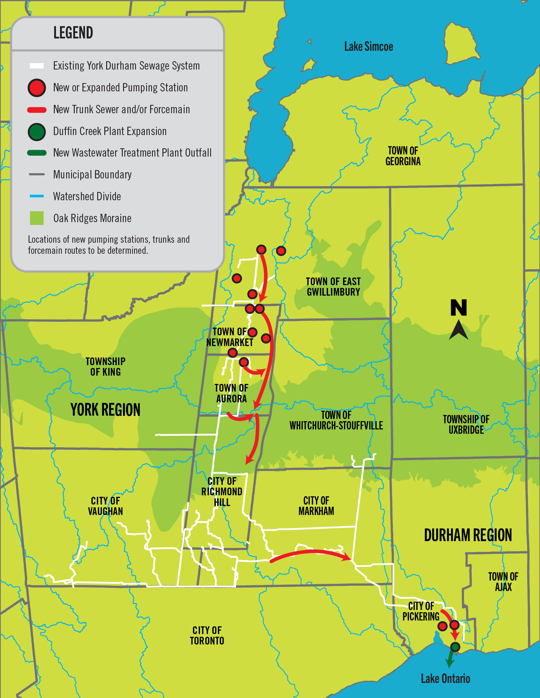 The Regional Municipalities of York and Durham are working together to carry out the York Region Sewage Works Project, a long-term wastewater infrastructure project across the Towns of East Gwillimbury, Newmarket and Aurora and the Cities of Richmond Hill, Markham and Pickering.