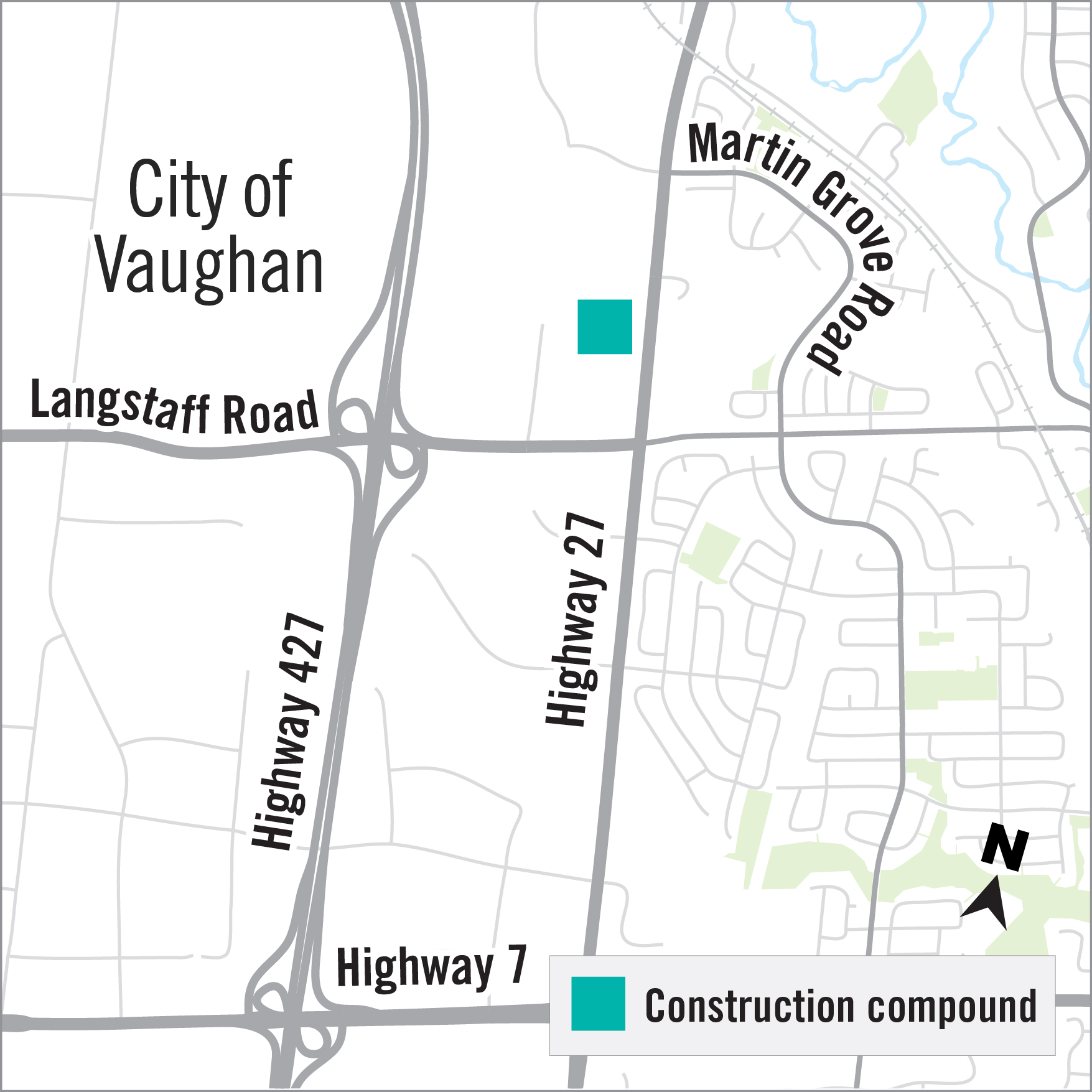 - The new gravity sewer pipe will be installed by a tunnelling process, requiring a construction compound on Highway 27, south of Martin Grove Road