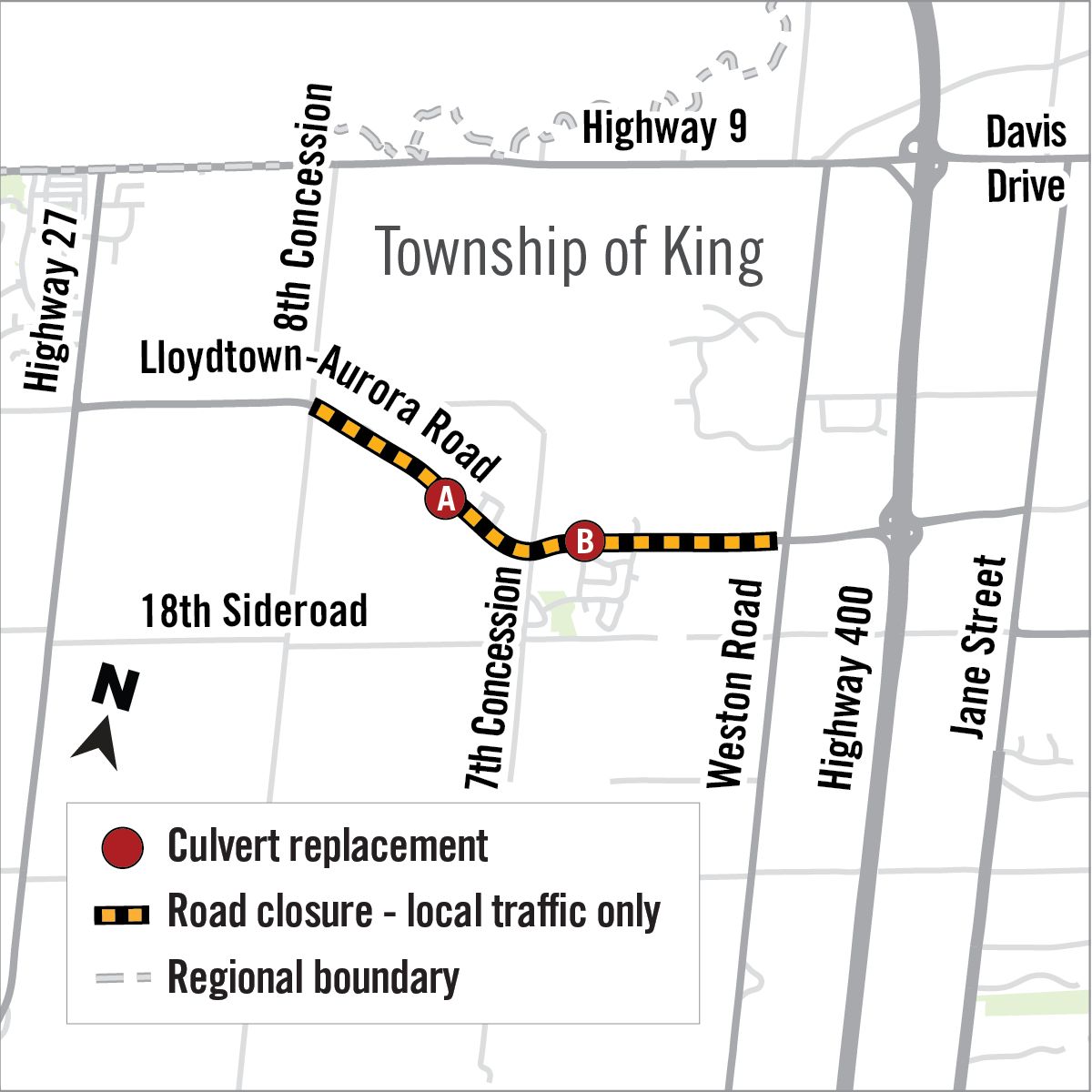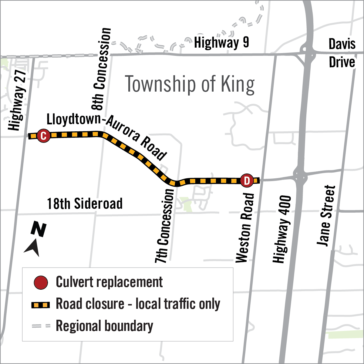 - Saturday, July 5, 2025 - Closure #1: No through traffic on Lloydtown-Aurora Road from 8th Concession to Weston Road from 7 a.m. to 7 p.m.