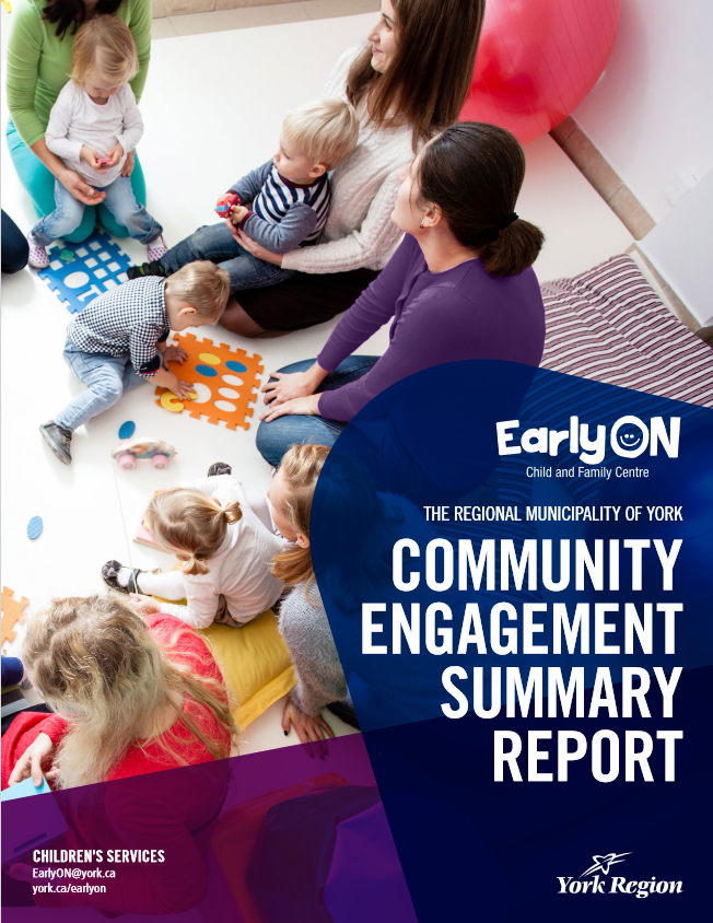 York Region conducted an EarlyON Service Delivery Review Parent and Caregiver Survey to learn more about the diverse needs of families with young children and inform the planning of EarlyON programs in York Region. The findings in the 2023 report will ensure programs and services are responsive to the needs of local communities and promote the inclusion of all families.