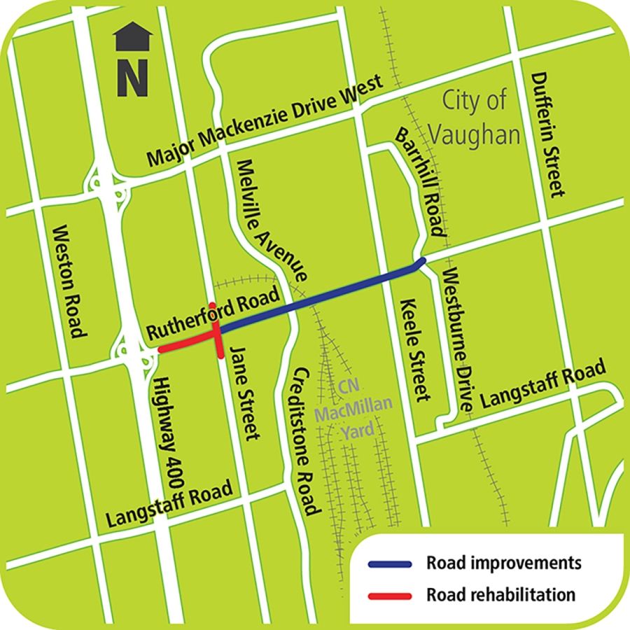- Reconstructing and widening Rutherford Road from four to six lanes including left-turn lanes from Westburne Drive to Jane Street