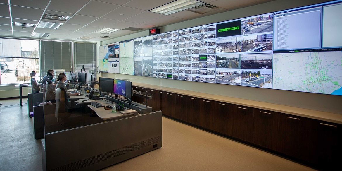 Traffic cameras, traffic management systems and weather tracking software allow staff to address and resolve traffic issues, triage local requests and respond immediately to incidents. The centre operates 24 hours a day, seven days a week.