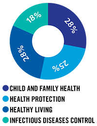 Programs include food safety, rabies control, safe water, vector-borne diseases, infection prevention and control, health hazard prevention and management and tobacco/electronic cigarette education and control.
