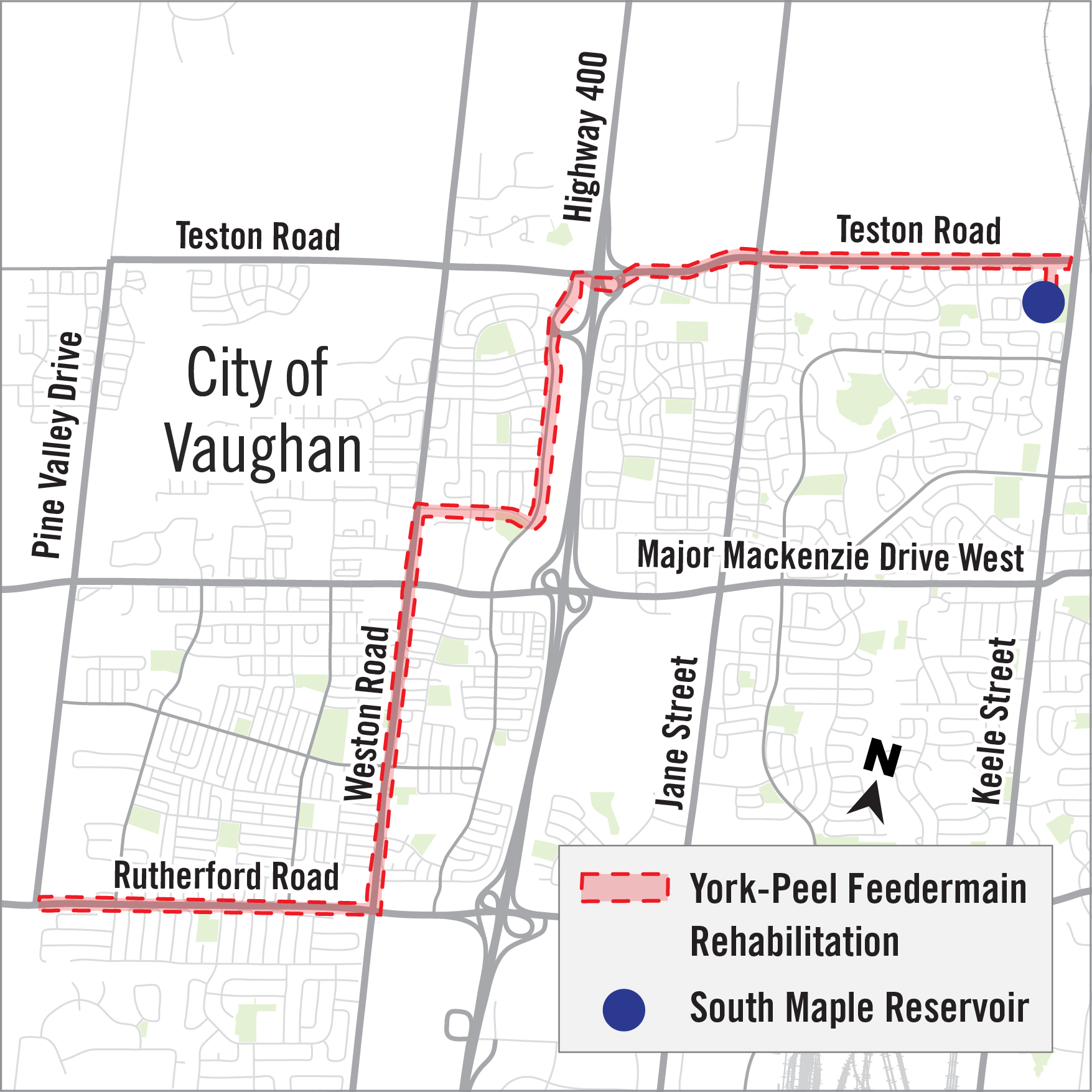 - Rehabilitating sections of the York-Peel Feedermain from Rutherford Road and Pine Valley Drive to the South Maple Reservoir in the City of Vaughan
